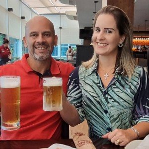 Dois anos depois, o trabalho (e uma leve súplica da noiva) os trouxe de volta pra mais perto de casa. O novo lar? Ribeirão Preto, a gloriosa capital nacional do chopp — perfeita pra eles, mesmo que ela siga firme no seu “cafézim com leite”, afinal, o sangue mineiro fala alto!